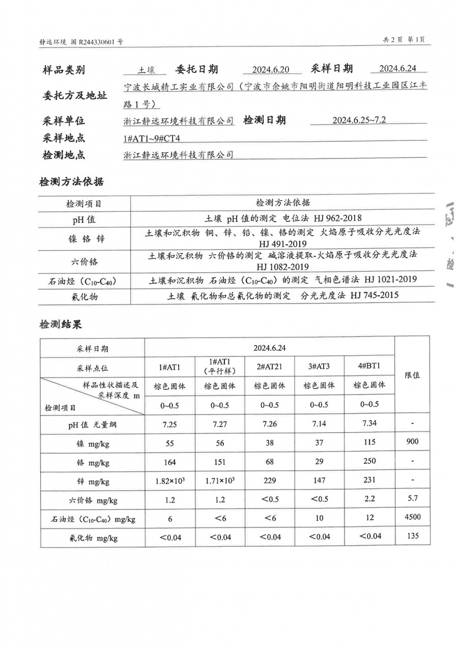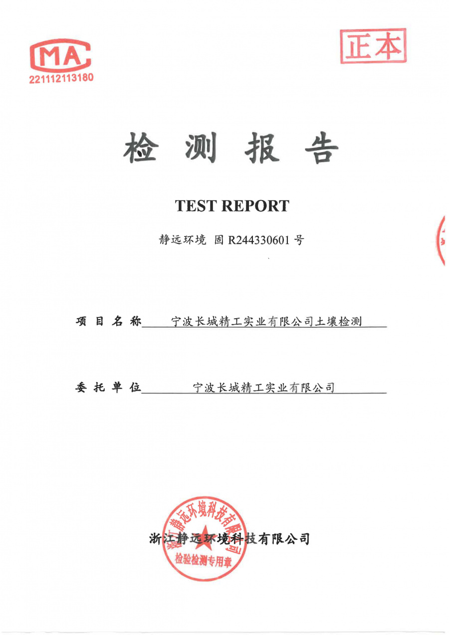 2024年長(zhǎng)城精工土壤檢測(cè)報(bào)告公示